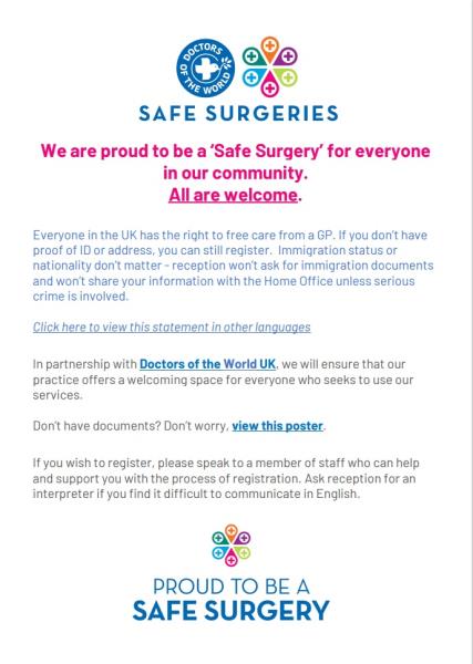 We would like to remind patients that we are a training practice for medical students, Doctors in training, nurses and HCA's, along with training our own staff to improve patient services and increase workforce